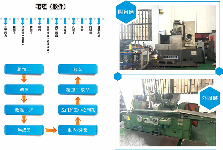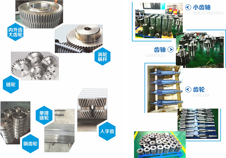 本公司专业生产各类齿轮;蜗轮,链轮等,最大滚齿模数24m,最大滚齿直径2.5米,亦可提供齿面淬火、渗碳、磨齿等工艺,齿轮精度可以达到5级。